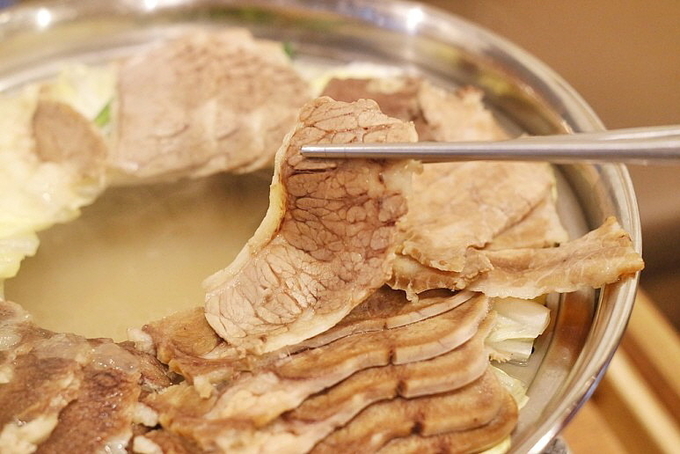 가마솥에 한우 사골과 양지를 푹 삶아낸 육수에 국수사리를 토렴해 내어주는데, 잡내와 잡맛이 없다. 뽀얀국물의 뒷맛이 전혀 텁텁하지 않고 개운하다. 몸보신한다는 생각이 절로 들게 한다.