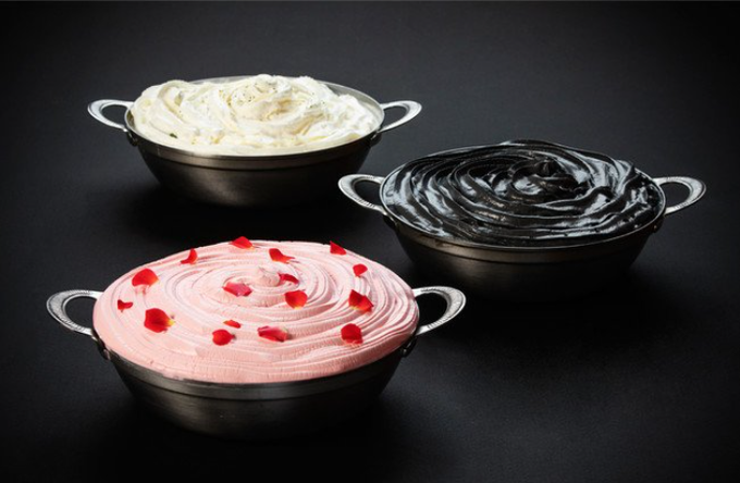 로제떡볶이 위에 블랙핑크 그룹을 상징하는 검은색, 핑크색 크림소스를 올렸다. 검은깨와 식용장미 추출물을 이용해 색감을 만들어냈다. 크림을 저으면 냄비에 숨겨진 떡볶이의 모습이 보인다. 크림이 떡볶이의 매운맛을 잡아줘 부담없이 먹을 수 있다.