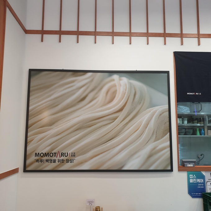 우동 메뉴는 총 6가지로 모모타루(카케)우동, 붓카케우동(덴뿌라, 치쿠타마텐), 키츠네우동, 덴뿌라우동, 자루우동을 8,000원~9,500원에 판매한다.
