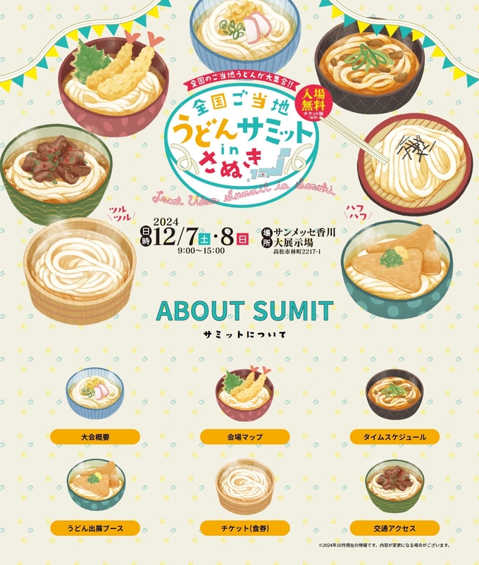 올해로 11회차 개최되는 '전국 우동 써밋(SUMMIT) 사누키2025’ 박람회는 일본의 최북단 홋카이도에서 최남단 규슈까지, 일본 전국 19개의 현지 우동이 출전한다.