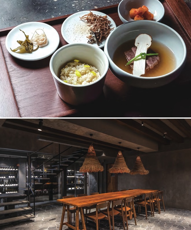 지역 농업, 어업, 소매업자와 긴밀하게 협업해 다시마, 미역 등 기장의 신선한 재료를 공급받고, 재료가 품은 이야기를 가장 순수한 형태로 드러내기 위해 셰프의 소임을 다한다. ‘식재료가 모든 맛의 출발점’이라는 요리 철학 아래 절제 되고 섬세한 자연의 균형을 담아내어 대접한다. 문승지 디자이너의 ‘팀 바이럴스’와 2년간 논의한 끝에 완성한 공간에도 기장의 계절과 지역성이 스며들어 있다.