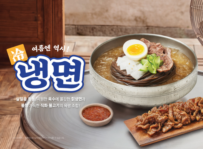 냉면은 물냉면과 비빔냉면 2종으로 선보인다. 물냉면은 살얼음을 더한 맑은 육수로 청량감을 강조했으며, 비빔냉면은 매콤새콤한 양념으로 더운 여름철 입맛을 돋운다. 두 메뉴 모두 직화 불고기를 곁들인 '육쌈냉면 세트'로 선택 가능해 보다 든든한 한 끼로 완성할 수 있다.
