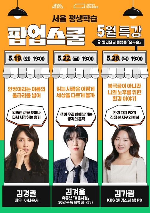 서울특별시평생교육진흥원이 지난 4월 도봉구 쌍문역 인근에 개관한 서울시 첫 역세권 평생학습 거점 ‘서울 평생학습 팝업스쿨’을 확대 운영한다. 시범운영 한 달간 500여 명이 참여했으며, 5월에는 정규강좌, 명사특강, 러닝숍 등 3개 영역에서 총 13개 과정을 편성하고, 650명의 시민 참여를 목표로 한다.