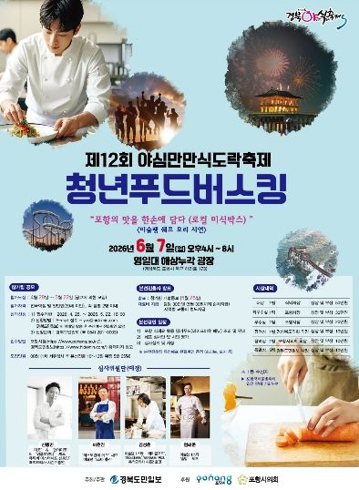 포항시는 제12회 야심만만 식도락축제의 ‘전국 청년푸드버스킹 요리경연대회’ 참가자를 모집한다.