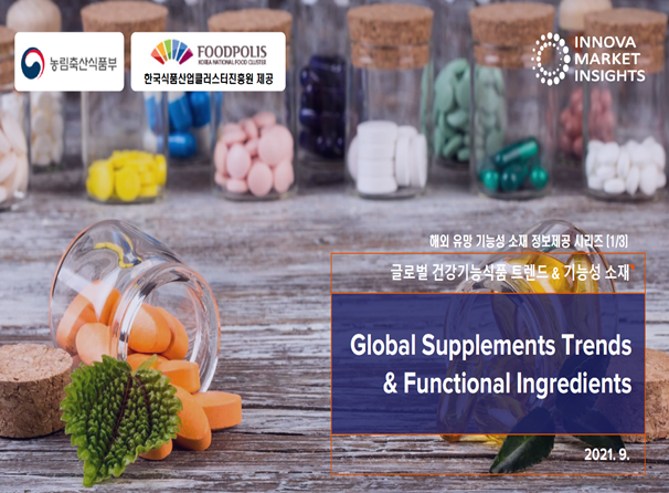 자료는 ▲세계 건강기능식품 시장 동향, ▲기능성별 유망 원료 및 제품 정보, ▲지역별 시장 동향 및 주요 브랜드 정보, ▲관련 시장에 대한 최신 뉴스, ▲주요 기능성 원료에 대한 세부 정보 등으로 구성했다.