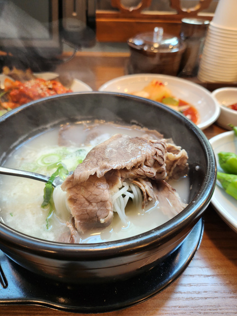 조미료 무첨가 순수 한우설렁탕 전문점으로 매장에 들어서면 오픈식 주방으로 커다란 가마솥에서 설렁탕을 조리하는 모습을 고객이 직접 볼 수 있다.