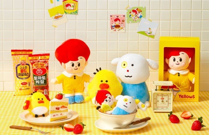 오뚜기는 2022년 공식 캐릭터 ‘옐로우즈’를 개발하고 다양한 굿즈와 브랜드 공간, 이벤트에 활용하고 있다. ‘뚜기’, ‘마요’, ‘챠비’ 3종 캐릭터를 인형과 키링으로 제작하고, ‘해피냠냠송’ 테마송을 공개했다. 디자인 스토어와 협업한 커스텀 굿즈도 선보였다.
