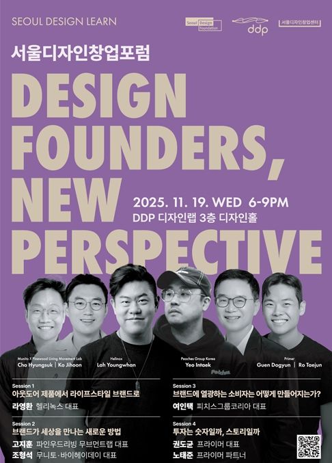 서울디자인재단은 11월 19일 오후 6시, DDP 디자인랩 3층 디자인홀에서 '2025 서울디자인창업포럼(Seoul Design Startup Forum 2025)'을 개최한다. 이번 행사는 국내 유일의 디자인 창업 전문 포럼으로, ‘디자인이 창업의 미래를 바라보는 관점, 감각이 전략이 되는 순간’을 주제로 디자인 창업가들이 자신만의 시선으로 시장을 읽고, 감각을 전략으로 전환하여 브랜드를 성장시켜온 실제 사례를 공유한다.
