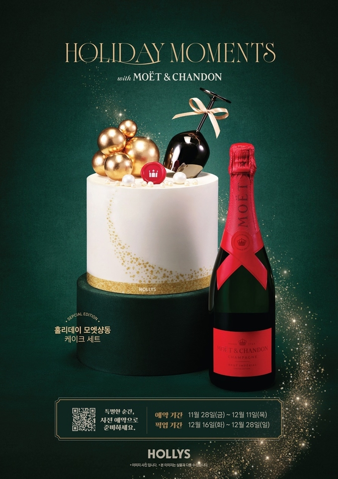깊고 짙은 풍미의 블랙 벨벳 시트에 크림치즈와 체리 콩포트를 더해 샴페인과 잘 어울리는 프리미엄 케이크를 완성했다. 특히, 케이크와 함께 페어링하기 좋은 프랑스 대표 샴페인 브랜드 ‘모엣 & 샹동’의 임페리얼 EOY 에디션을 포함한 ‘홀리데이 모엣샹동 케이크 세트’로도 만나볼 수 있어 파티의 순간을 더욱 특별하게 만들어준다.