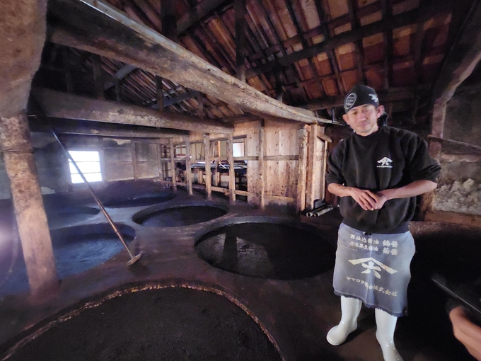 이곳은 일본 국가유형 문화재로 등록되어 있는 양조장으로 높이 2미터, 직경 2미터 30센티미터의 크기의 삼나무통에서 자연발효된 간장만을 선보인다.