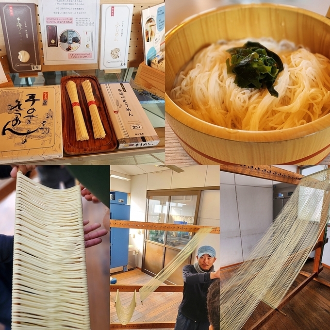쇼도시마 테노베 소면공장 방문, 8대째 업을 이어오고 있는 장인과 함께 전통적인 제조공장 시설 체험과 쇼도시마 수타국수를 맛보는 시간을 갖는다.
