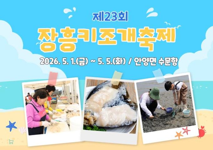 장흥군 관계자는 “5월 가정의 달을 맞이하여 부모님, 어린이와 함께 온 가족이 함께 키조개 축제장에서 키조개 요리도 맛보고 다양한 체험도 즐기면서 여유로운 삶을 만끽하는 계기가 되길 바란다”고 전했다.