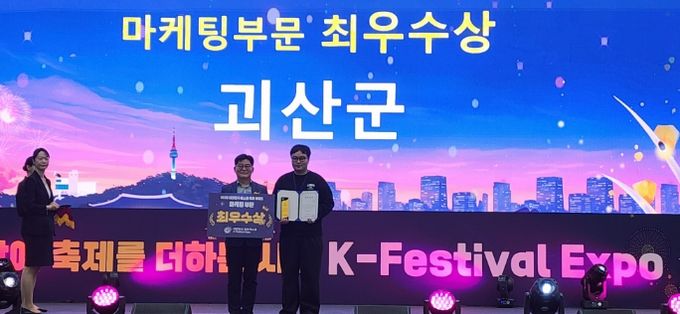 충북 괴산군은 지난 17일부터 사흘간 수원컨벤션센터에서 열린 ‘제6회 대한민국 대표 축제 박람회’에서 마케팅 부문 최우수상을 받았다고 20일 밝혔다.