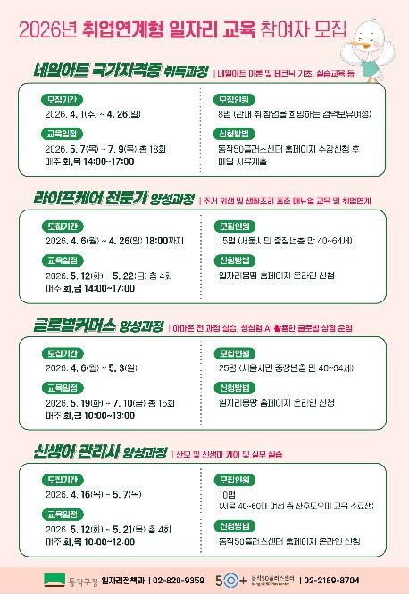 동작구가 취업을 희망하는 주민의 실무 역량 강화와 현장 진출 지원을 위해 ‘취업연계형 일자리사업’을 확대하고 신규 참여자를 모집한다고 밝혔다.