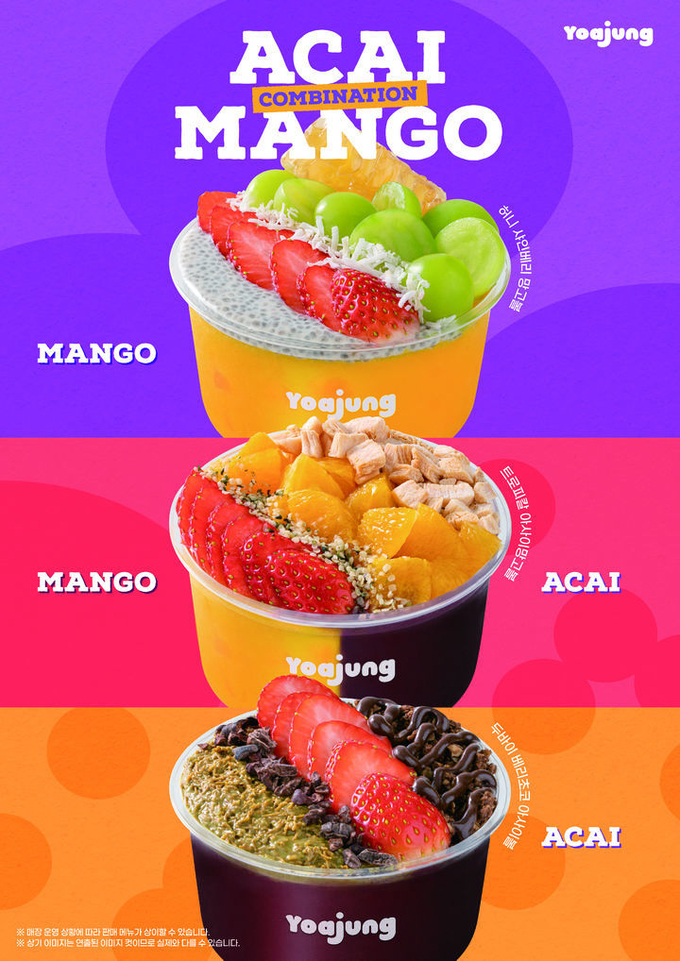 프리미엄 디저트 브랜드 '요아정(YOAJUNG)'은 아사이볼 신메뉴 3종을 선보였다. 브라질산 프리미엄 아사이 원료를 사용하고 트랜스지방과 콜레스테롤을 배제한 레시피를 적용했으며, 비타민 A·C와 저분자 피쉬 콜라겐까지 담아 디저트이면서도 한 끼 식사로 손색없는 영양을 갖췄다.