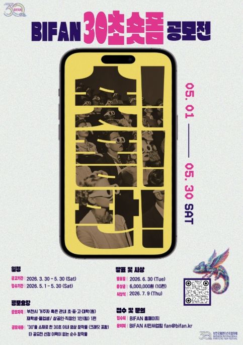 작품 접수는 5월 1일부터 5월 30일까지 진행하며, BIFAN 홈페이지 ‘숏폼 공모전’ 페이지를 통해 제출하면 된다. 심사를 거쳐 본선 진출작 30편은 6월 30일 발표하며, 최종 수상작 10편은 7월 시상식에서 공개한다.