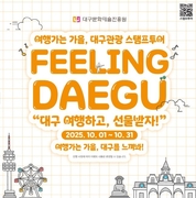 대구광역시와 대구문예술진흥원관광본부는 문화체육관광부 ‘여행가는 가을’ 캠페인을 연계하여 10월 한 달간 대구를 방문하는 관광객 대상으로 스탬프투어 이벤트를 운영한다. 민족 대명절 추석을 맞아 고향을 찾는 귀성객과 가을 여행을 즐기는 국내 관광객들이 대구의 매력을 새롭게 발견할 수 있도록 이벤트를 마련했다. ‘여행가는 가을’은 문화체육관광부, 행정안전부, 농림축산식품부, 해양수산부 등 4개 부처와 관광업계가 협력하여 추진하는 범국민 여행 캠페인으로 교통, 숙박, 여행상품 할인과 다양한 프로그램을 통해 국내관광 수요를 촉진하는 대규모 프로젝트다. 진흥원 관광본부는 이번 캠페인에 발맞춰 대구관광 스탬프투어 이벤트를 통해 대구 여행을 독려한다. 10월 1일부터 31일까지 운영되며, 참여 방법은 스마트폰 앱 '스탬프 투어'를 다운로드 받고 관광지 47개소 중 4개소 스탬프를 획득하여 선물을 신청하면 된다. 구·군별 추천 관광지 및 대구문화예술진흥원 내 시설로 스탬프를 구성했다. 스탬프를 획득한 참가자에게는 추첨을 통해 다양한 경품이 지급된다. 강성길 대구문화예술진흥원 관광본부장은 “올해 추석 연휴 기간을 포함해 마련된 이번 행사가 귀성객과 관광객 모두에게 대구의 숨은