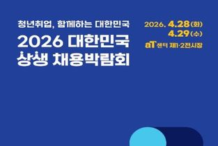 고용노동부는 관계부처 및 한국경제인협회 등 경제단체와 공동으로 오는 4월 28일과 29일, 서울 양재 aT센터에서'2026 대한민국 상생 채용박람회'를 개최한다. 이번 박람회는 청년 고용시장에 활력을 불어넣기 위해 정부와 민간이 공동 개최하는 행사로서, 대기업*의 협력사, 중견·중소기업·벤처스타트업, 글로벌 기업 등 약 700개 기업이 온·오프라인으로 참여할 계획이다. 오프라인 박람회에 앞서 구직 청년의 접근성을 높이고 기업의 인재채용을 지원하기 위해 3월 19일(목) 박람회 홈페이지를 오픈한다. 해당 사이트에서는 ▲온라인 채용관, ▲오프라인 박람회 참가 신청, ▲오프라인 박람회 면접·상담 예약, ▲사전 특강 신청, ▲취업선배와의 1:1 커피챗 예약 등이 가능하다. 온라인 채용관은 채용 플랫폼인 사람인을 통해 7월까지 운영을 이어간다. 4월 28일(화)~29일(수) 현장에서는 ▲기업 채용상담, ▲디지털·신기술 인재양성 프로그램 상담, ▲집중면접(현장 면접, 퍼스널컬러 진단, 정장 대여, 헤어·메이크업 지원), ▲취업선배와의 1:1 커피챗 등이 운영될 예정이다. 채용박람회 참가비는 무료이고 주요 프로그램 및 참여기업은 박람회 홈페이지에서 확인할 수 있다.