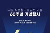 식품의약품안전처는 11월 5일 청주 오스코(OSCO)(청주시 흥덕구 오송읍 소재)에서 ‘식품‧식품첨가물 공전 제정 60주년 기념행사’를 개최한다고 밝혔다. 이번 행사는 1966년 제정되어 우리나라 식품·식품첨가물의 안전관리 기준이 수록된 '식품공전'과 '식품첨가물공전'의 지난 60년간 발전 과정을 돌아보고 미래 식품산업 변화에 대한 발전 방향을 모색하기 위한 자리이다. 기념식에는 정부·산업계·학계·소비자단체 등 식품 분야 관계자 200여 명이 참석해 함께 식품·식품첨가물 기준・규격의 의미와 성과를 되새기고, 기준・규격 개선과 현장의 안전관리에 기여한 유공자(12명)에게 표창을 수여하며 격려한다. 이어 기념강연 시간에는 단국대학교 김상오 교수가 ‘AI를 이용한 식품산업의 미래’라는 주제로 식품산업 전반에 걸쳐 인공기능 기술이 가져올 혁신을 전망한다. 또한 ‘걸림돌을 디딤돌로’라는 제목으로 소비자·업계·학계·식약처가 함께 식품 안전기준의 미래 발전방향을 논의하는 토크콘서트를 진행한다. 이와 함께 식품 안전기준의 60년간 발자취를 담은 동영상, 주요 대표 식품 전시 등 다양한 전시 프로그램도 운영한다. 오유경 처장은 “그간 CODEX 가입, 아프라스 의장국 선임