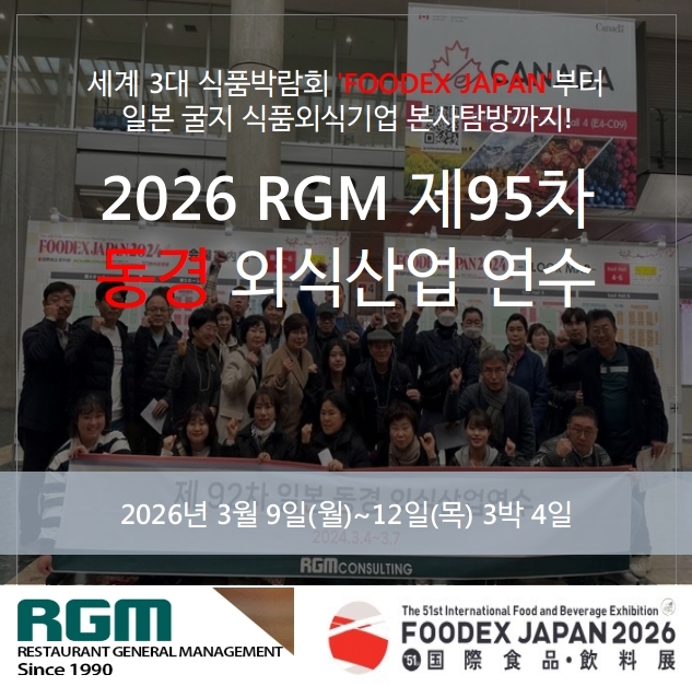 식품·외식 기업인들을 위한 맞춤형 외식연수인 '제95차 일본 동경 외식산업 연수'가 2026년 3월 9일(월)부터 12일(목)까지 4일간 일본 도쿄에서 진행된다.