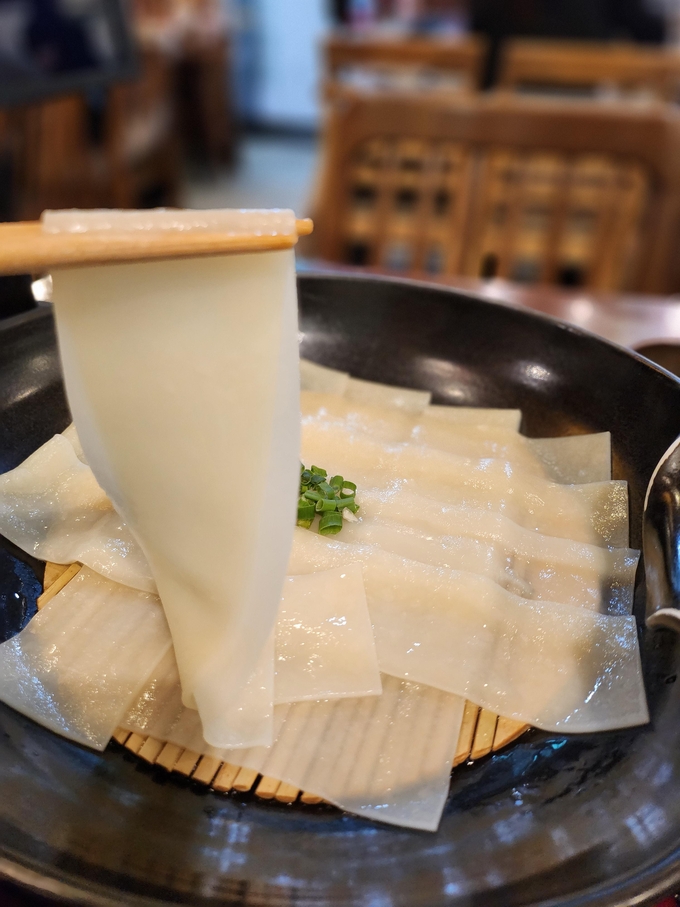 무엇보다 하루 20판만 한정 판매하고 있는 히모카와 우동(납작우동)이 히노야마의 시그니처 메뉴인데, 보통의 우동 면과는 달리 넓적한 모양의 면으로 면폭이 4~5cm나 된다.