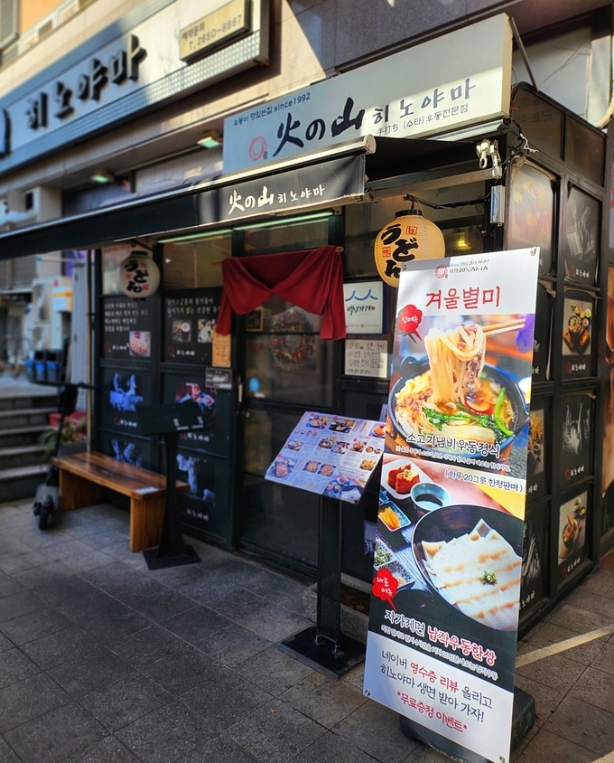 서울 양천구 목동 양천경찰서 뒤편에 있는 ‘히노야마’는 1992년에 문을 연 ‘백년가게’ 우동 전문점으로, 이 곳 우동의 첫 인상은 선명하다.