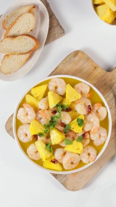 밑간한 새우를 버터와 마늘, 페퍼론치노와 함께 볶은 뒤 올리브유를 더해 끓인다. 여기에 한 입 크기로 썬 파인애플을 넣고 약 1분간 끓이면 완성된다. 바게트 등 빵을 곁들이면 든든한 한 끼로 즐길 수 있다.