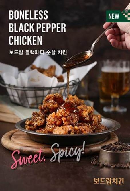 ㈜보드람씨앤알 관계자는 ‘매콤하면서도 달콤한 맛을 선호하는 MZ세대는 물론 어린이들부터 성인까지 온 가족 모두 즐길 수 있도록 이번 신제품을 개발했다’며 ‘보드람치킨을 대표하는 오리지널 후라이드 외에도 새롭게 출시된 신메뉴 블랙페퍼 순살 치킨에 많은 기대와 관심 부탁드린다’고 말했다.
