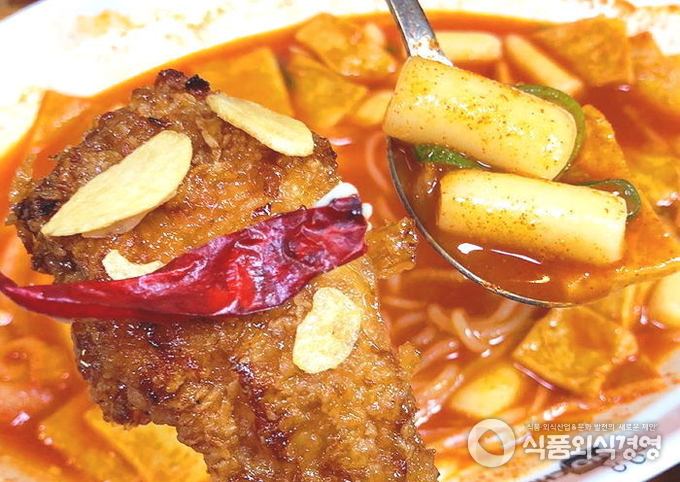 쫄깃한 떡과 어묵, 쫄면을 넣어 매콤하면서 달달한 이색 국물 떡볶이의 맛을 재현했다. 고소한 치킨과 매콤달달한 국물 떡볶이를 곁들여 먹으면 맛도 배가 되고, 자칫 느끼할 수 있는 치킨의 맛도 잡을 수 있다.