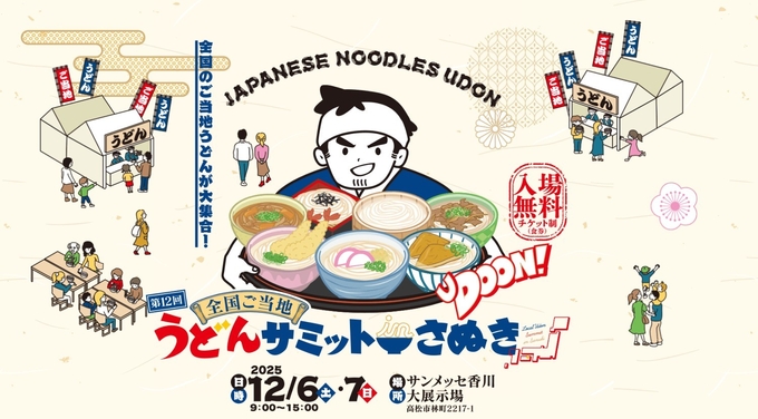 올해로 11회차 개최되는 '전국 우동 써밋(SUMMIT) 사누키2025’ 박람회는 일본의 최북단 홋카이도에서 최남단 규슈까지, 일본 전국 19개의 현지 우동이 출전한다.