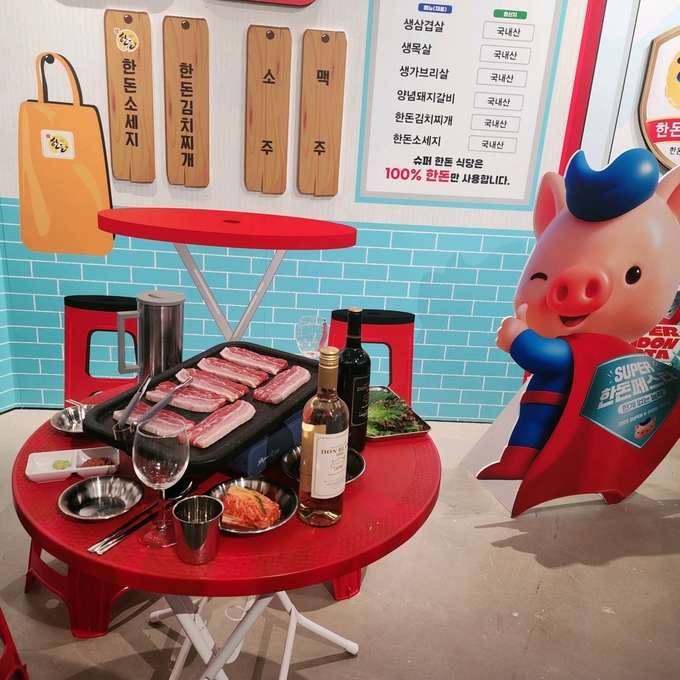 팝업은 '한계 없는 능력'을 가진 한돈의 '1001% 슈퍼 에너지'를 체험하고, 다양한 글로벌 한돈 요리를 즐기는 체험 공간으로 꾸며졌다.