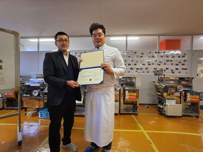 타카마츠대학 학장의 ‘사누키우동에 대하여’ 특강을 시작으로, 1975년 개설, 50년간 축적된 제면기술을 전수 중인 (주)야마토제작소 (大和作用所) <야마토 우동기술센터>를 방문, 수타제면법과 기계제면에 관한 압축된 조리비법을 배우는 등 수료증 과정을 진행했다.