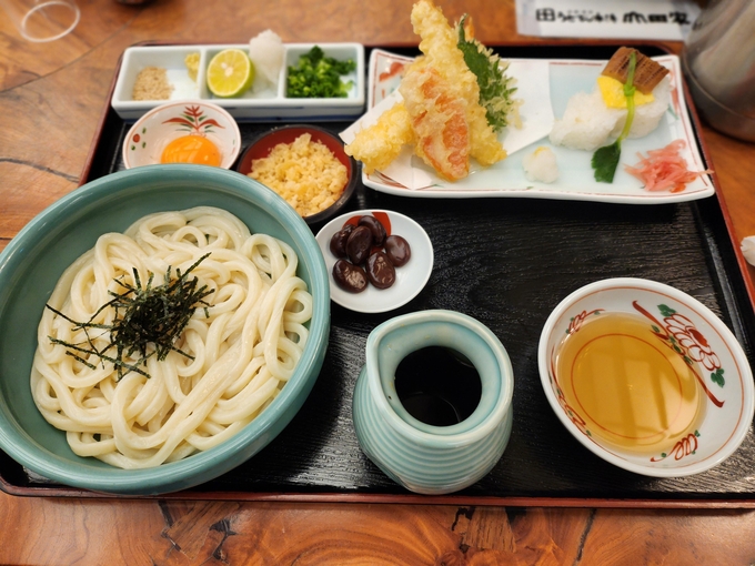 이번 연수에서는 야마다야(山田家) 우동전문점을 방문했다. 에도 말기에서 쇼와 초기 양식의 정원과 건물이 국가 등록 유형문화재로 선정된 곳으로 멋진 정원과 실내에서 가가와현 전통 스시와 튀김 등 요리와 우동을 함께 먹을 수 있다. 대표 메뉴인 ‘가마붓카케테이쇼구(釜ぶっかけ定食)’는 바삭한 튀김과 쫄깃한 우동을 맛볼 수 있다.