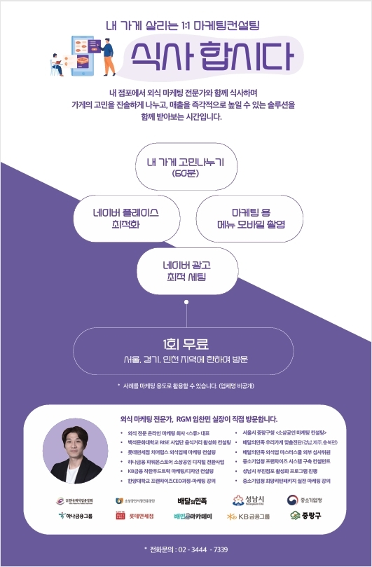 실제 중랑구청에서 실시했던 ‘음식점 맞춤형 컨설팅’ 사업에서는 1번의 컨설팅으로 월 매출 3000만원에서 4500만원으로 한달만에 매출이 150% 상승하였습니다.
