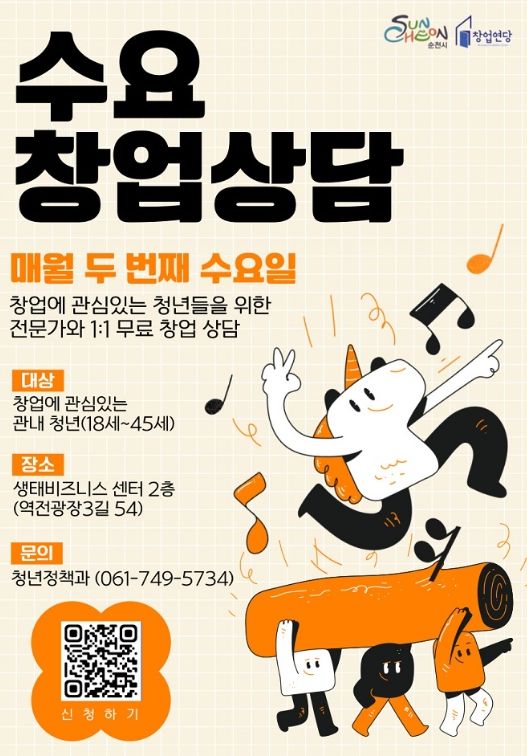 순천시가 창업에 어려움을 겪는 청년 창업자와 예비 창업자를 대상으로 '2026년 수요창업상담'을 연중 운영한다.