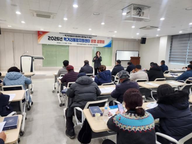 진주시는 6일 농업기술센터 농업인교육강의실에서 먹거리통합지원센터의 출하농가 111명을 대상으로 ‘2026년도 먹거리통합지원센터 운영 설명회’를 개최했다.