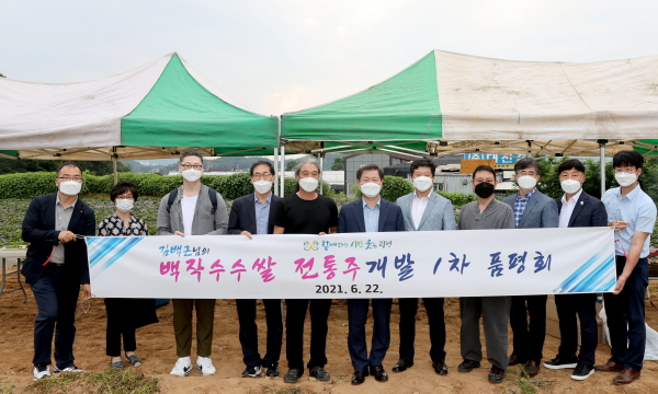 광명시가 백작수수쌀을 이용한 광명시의 전통주 출시를 앞두고 22일 관내 김백근 농장(가락골 마을)에서 품평회를 열었다.