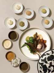 누룩과 명이, 감태, 유자, 곶감, 새우젓이라는 한국 식재료가 미국 크림치즈와 만났다. <비채나>의 전광식 총괄 셰프가 미국유제품수출협회(USDEC)와 손잡고 식탁에 올린 동서양 발효의 맛이다. 크림치즈와 한식. 도통 접점이 없는 것 같던 두 세계가 12월 9일, 한식 파인 다이닝 <비채나>에서 만났다. 미국유제품수출협회와 협업해 ‘크림치즈로 빚은 한국의 미미 美味’ 쇼케이스가 열린 것. 지금껏 특정 브랜드와 협업한 사례가 없던 <비채나>가 외부와 손을 잡았다는 점, 그리고 미국 오리지널 치즈인 크림치즈가 한국의 대표적인 한식 레스토랑과 만났다는 신선함이 더해지며 많은 이들의 이목이 집중됐다. 이날 선보인 메뉴는 한국 식재료를 크림치즈와 접목한 한 입 요리 6가지와 칵테일 1종. 소고기와 명이의 궁합을 활용한 ‘명이나물 크림치즈 육회증편’을 시작으로 청유자와 청양고추, 소금을 숙성해 크림치즈와 배합하고 대게살 반죽에 넣어 튀겨낸 ‘유자크림치즈 게살튀김’, 한 입 크기의 호떡피에 계피와 곶감, 크림치즈를 섞어 넣은 ‘곶감 크림치즈 옛날호떡’, 누룽지와 생크림, 누룩 소금, 크림치즈로 완성한 소스에 국수와 볶은 김치, 양파장아찌를