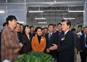 대한민국 스마트농업을 선도 중인 충남도가 청년농 임대 전용 스마트팜 문을 열었다. 공주시 이인면 주봉리 일원에서 ‘임대형 스마트팜’ 1호(공주 주봉지구) 준공식이 열렸다. 김태흠 지사와 최원철 공주시장, 청년농 등 300여 명이 참석한 가운데 열린 이날 준공식은 경과보고, 입주 청년농 소개, 테이프 커팅, 스마트팜 온실 순회 등의 순으로 진행됐다. 임대형 스마트팜은 도의 농업·농촌 구조 개혁을 위한 스마트농업 육성 정책에 따라 도내 12개 시군 17개소에서 건립 추진하고 있다. 영농 기반과 경험이 부족한 청년농에게 작물 재배와 농업 경영 기회를 제공, 농업·농촌에 안정적으로 정착할 수 있도록 한다는 목표다. 17개 임대형 스마트팜 가운데 처음 완성한 공주 주봉지구는 지난 2022년부터 150억 원을 투입해 건립했다. 3.4㏊의 부지에 2.1㏊ 규모 3연동 스마트팜 10개동과 관리동 등을 설치했다. 스마트팜 10개동은 딸기 3동, 오이 3동, 토마토 4동 등으로, 농가별 환경제어가 가능하다. 도와 공주시는 최근 10개 팀 11명의 입주 청년농을 선발했다. 입주 청년농들은 보증금 300만 원에 연간 66만 2910원∼78만 1290원의 저렴한 임차료를 내고 스마