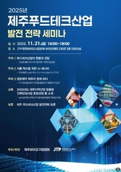 제주에서 푸드테크 산업에 대한 발전 전략과 과제를 모색하는 세미나가 열린다. 제주테크노파크(원장 지영흔, 제주TP)는 제주바이오기업협회(회장 김성후)와 함께 오는 21일 오후 4시 제주TP 청정바이오사업본부 바이오센터 2호관 3층 대회의실에서 ‘제주 푸드테크 산업 생태계 조성 및 활성화’를 주제로 2025년 제주푸드테크산업 발전 전략 세미나를 개최한다고 20일 밝혔다. 이번 세미나는 최근 인공지능(AI), 로봇기술 등 디지털 기술이 식품산업 전반에 접목되는 푸드테크(Food Tech) 산업이 확산됨에 따라 제주지역 식품산업 경쟁력 제고와 신산업 창출 대응방안을 모색하기 위해 마련됐다. 제주는 청정자연 환경과 풍부한 농·축·수산 자원을 바탕으로 다양한 식품이 개발되고 있으나, 지리적 여건으로 식품 제조업 기반이 열악해 부가가치 창출이 미흡한 상황이다. 이에 관련 분야 전문가 및 산·학·연 관계자들이 모여 푸드테크 산업의 발전 전략과 과제를 논의한다. 주제발표는 ▲이상준 월드푸드테크협의회 기획조정실장의 '푸드테크산업의 현황과 전망', ▲윤성희 에루디오 바이오 한국 대표의 '식품 혁신을 위한 AI 레시피', ▲이기원 광동제약 천연물융합연구개발본부 팀장의 '광동제약