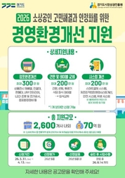 경기도와 경기도시장상권진흥원이 추진하는 ‘2026년 소상공인 경영환경개선사업’의 신청 마감이 일주일 앞으로 다가왔다. 경상원은 지난 3월 31일부터 시작한 이번 사업에 도내 소상공인들의 높은 관심과 참여가 이어지고 있으며, 오는 4월 13일(월) 접수 마감을 앞두고 아직 신청하지 못한 소상공인들의 적극적인 참여를 당부한다고 6일 밝혔다. 이번 사업은 지속되는 고물가와 경기 침체를 고려해 지원 한도 내에서 공급가액의 100%를 한시적으로 지원하는 것이 특징이다. 이에 따라 소상공인들은 지원금 초과액 및 부가세 등 일부 항목을 제외하고 최대 300만 원까지 비용 부담 없이 점포 환경을 개선할 수 있어 현장의 호응이 높다. 김민철 경기도시장상권진흥원장은 “현장에서 만난 소상공인분들의 가장 큰 고민은 노후 시설 개선에 따른 비용 대한 부담이었다”며, “이번 사업이 점포의 경쟁력을 높이고 다시 일어설 수 있는 마중물이 되길 바라며, 마감 기한 내에 꼭 신청하여 혜택을 누리시길 바란다”고 말했다. 신청은 오는 4월 13일(월)까지 소상공인 종합 지원 플랫폼 ‘경기바로’를 통해 온라인으로 접수할 수 있다. 온라인 접수가 어려운 소상공인은 경상원 각 지역 센터를 방문하여