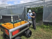 상주시농업기술센터는 오는 9월부터 올해 연말까지 노지 스마트농업 시범지구 조성·운영의 일환으로 관내 노지 포도농가에서 자율주행 운반로봇 실증시험을 실시한다고 밝혔다. 이번 실증시험에 투입되는 운반로봇 총 2대로 ㈜대동 RT-100 모델이며 GPS기반 자율주행 및 원격리모콘 기능 등을 농업현장에서 농가가 직접 사용하여 데이터 축적 및 기능구현 등 효율성을 실증시험할 계획이다. 실증시험을 위해 대상농가들에게는 기본적인 운반로봇 작동 및 GPS 경로 입력 등의 조작방법에 대해 사전교육을 실시했으며 올해 실증시험이 끝나기 전까지 개발예정인 음성인식 AI 기능 등도 연구개발이 완료되면 추가적으로 기능을 도입하여 시험할 예정이다. 기술보급과 김인수 과장은 “이번 운반로봇 실증시험을 통해 시설이 아닌 노지에서의 로봇의 실용성과 효과를 정확하게 확인해볼 수 있는 기회가 되기를 바란다.”고 말했다.