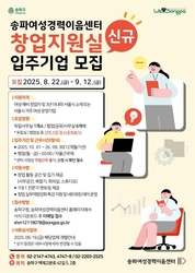 서울 송파구가 올가을 송파여성경력이음센터 창업지원실에 입주할 신규 여성(예비)사업체 7곳을 오는 12일까지 모집한다고 알렸다. 구는 초기 또는 예비 여성창업자를 위해 송파여성경력이음센터 창업지원실(백제고분로42길 5, 2층) 내 사무공간을 지원하고 있다. 이곳은 우수한 창업 아이템을 가진 여성들이 사업의 꿈을 펼칠 발판이자 경쟁력을 강화하는 배움터이기도 하다. 2018년부터 지난해까지 총 46개 여성기업이 혜택을 받았다. 올해는 독립사무실 1개소와 협업사무실 6석 등 총 7개 기업을 모집한다. 입주자들은 1년간 사무공간과 회의실은 물론, 복합기 등 각종 사무집기 등을 자유롭게 사용할 수 있다. 센터 내 스튜디오 시설에서는 제품 촬영과 라이브커머스 영상을 촬영할 수 있어 유용하다. 사무공간 이용은 물론, 창업 특강을 통해 실무역량도 배양할 수 있다. 구는 창업 전문가의 1:1 멘토링, 각종 마케팅 및 세무 특강 등 초보 사업가에게 꼭 필요한 양질의 교육을 마련했다. 나아가, 공유사무실의 장점을 십분 활용한 ‘네트워킹데이’를 운영해 입주자 간 정보를 공유하고 함께 성장할 수 있도록 지원할 예정이다. 입주 대상은 서울에서 거주하며 창업을 준비 중이거나 최근 3년
