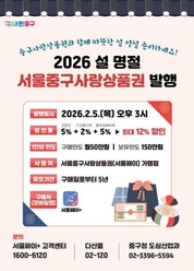 서울 중구가 설 명절을 맞아 오는 5일 오후 3시부터 총 40억 원 규모의 ‘서울중구사랑상품권’(이하 ‘상품권’)을 발행한다. 상품권에는 기존 5% 구매 할인 혜택에 결제 시 2%를 돌려받는 페이백과 발행 당일 물량 선점이 가능한 ‘찜페이’ 기능을 새롭게 추가해 구민들의 편리하고 알뜰한 명절 준비를 도울 예정이다. 먼저 상품권은 서울페이플러스 앱에서 5% 할인된 가격으로 구매할 수 있다. 1인당 월 구매 한도는 50만 원, 최대 보유 한도는 150만 원이며 유효기간은 구매일로부터 5년이다. 특히, 이번에 도입된 ‘찜페이’ 서비스는 발행 당일 결제 대금이 없어도 상품권을 미리 예약(찜)할 수 있는 기능으로, 최대 60일까지 결제 유예가 가능해 구매 편의성이 강화됐다. 풍성한 페이백 혜택도 눈길을 끈다. 상품권 결제 시 사용액의 2%를 다음 달 20일에 ‘페이백 상품권’으로 돌려주며, 이는 올해 1월 1일 이후 결제분부터 소급 적용된다. 기존에 보유한 ‘(신)중구사랑상품권’을 사용하는 경우에도 동일한 혜택이 적용된다. 공공배달앱 ‘땡겨요’를 이용하면 혜택의 폭은 더욱 넓어진다. ‘땡겨요’ 앱에서 중구사랑상품권으로 결제하면 사용액의 5%를 ‘광역 땡겨요 상품권’으