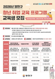 양천구가 지역 청년들의 구직 경쟁력을 강화하고 실질적인 취업 성공을 지원하기 위해 ‘2026년 청년 취업 교육 프로그램’을 본격적으로 운영하고, 교육생 80명을 모집한다고 밝혔다. ‘청년 취업 교육 프로그램’은 전문 교육기관과 연계해 직무 교육부터 자기소개서 첨삭, 면접 코칭, 취업 연계까지 원스톱으로 지원하는 양천구 대표 청년 일자리 사업이다. 2017년부터 프로그램 운영을 통해 현재까지 수료생 240명 중 149명이 취업에 성공했으며, 지난해에는 실무 중심 교육 과정 운영으로 취업률 55%를 기록했다. 올해는 취업 성공률을 더욱 높이기 위해 최근 고용시장 트렌드와 구인 수요를 반영해 ▲공항 및 국가 중요시설 보안검색 전문인력 양성 ▲타일 실무 및 자격취득 ▲AI 기반 시험인증 전문가 양성 ▲공항지상직 체크인카운터 양성 등 4개 과정을 운영한다. ‘보안검색 전문인력 양성과정’은 ㈜항공보안아카데미에서 진행되며, 항공경비 및 보안검색 초기교육 등 총 86시간의 집중 커리큘럼을 통해 공항 및 국가 중요시설 보안 요원을 양성한다. ‘타일 실무 및 자격취득 과정’은 최근 수요가 급증한 인테리어 시공 분야의 취업과 창업을 지원한다. 교육기관은 다인직업전문학교로, 실무