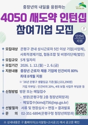 서울 은평구는 직업 전환이 필요한 중장년 세대에게 양질의 일자리를 제공하기 위해 ‘4050 새도약 인턴십 프로그램’에 참여할 기업을 모집한다고 밝혔다. 이 프로그램은 중장년 4050 세대를 채용하는 기업에 인건비를 지원하고, 조기퇴직 등으로 재취업이 필요한 중장년 구직자에게 안정적인 근로 기회를 제공한다. 구는 해당 사업을 올해로 4년째 운영하고 있다. 프로그램 참여 대상 기업은 관내 상시근로자 5인 이상의 기업을 비롯해 사회적경제기업, 협동조합, 비영리단체(법인)다. 기업당 1~2개의 일자리 신청이 가능하며, 총 5개의 일자리를 선발할 예정이다. 선정된 기업이 프로그램에 선발된 중장년 근로자를 채용하면 2026년 은평구 생활임금 기준 인건비 월 253만 3,290원의 80%를 최대 8개월간 지원받을 수 있다. 근로자 인건비의 20%와 4대 보험 사업주 부담분, 월차수당 등은 기업이 부담한다. 모집 기간은 내달 6일 오후 6시까지이며, 신청은 은평구청 청장년희망과를 방문하거나 이메일로 접수하면 된다. 서류심사와 현장실사, 면접을 거쳐 2월 25일 선발 결과를 발표할 예정이다. 김미경 은평구청장은 “4050 새도약 인턴십 프로그램은 풍부한 경험과 역량을 갖춘