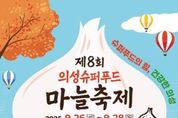 의성군은 오는 9월 26일부터 28일까지 3일간, 의성읍 남대천 구봉공원 일원에서 『제8회 의성슈퍼푸드마늘축제』를 개최한다고 밝혔다. 올해 축제는 ‘슈퍼푸드의 힘, 건강한 의성’을 슬로건으로, 의성 슈퍼푸드를 주제로 한 공연과 체험, 먹거리를 통해 건강과 즐거움을 함께 누릴 수 있는 장으로 준비됐다. 축제 첫날 개막식 퍼포먼스 ‘50인의 의성군민 난타대 공연’을 시작으로 사흘간 다채로운 무대 공연과 체험 행사가 이어진다. 무대 프로그램에는 국내 최정상 밴드 YB(윤도현 밴드)와 트로트 가수 장윤정과 김다현 등이 출연해 열기를 더한다. 또한, 첫째 날 공연 이후에는 1,000대 규모의 드론 미디어쇼가 밤하늘을 수놓으며 관람객들에게 잊지 못할 장면을 선사할 예정이다. 지역민이 주인공이 되는 프로그램도 준비됐다. 의성마늘과 농특산물을 활용해 실력을 겨루는 '슈퍼푸드 요리경연대회', 군민의 끼와 열정을 뽐내는 '의성 슈퍼스타 선발대회', 지역 예술인들이 무대 '지역예술인 한마당'은 주민과 관광객이 함께 어울리는 소통의 장이 될 예정이다. 체험과 먹거리 공간도 풍성하다. 친환경 나무놀이터, 레트로 오락실 체험, 마늘 인 더 오징어게임, 슈퍼푸드 전시관, 플리마켓 등