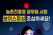 농촌진흥청 공무원 사칭 보이스피싱 조심하세요! 농촌진흥청 OOO 연구사라고 합니다. [사칭수법] 농촌진흥청 직원(허위 또는 수집된 실명)의 이름을 사용함 * 실제 직원이 아니거나, 인터넷에서 수집한 공무원 실명을 사칭 메일로 보낸 공문서를 보시면 OO사업의 부정 수급 대상자로 되어있습니다. OO계좌로 보조금 반환을 하셔야 합니다. [사칭수법] 허위 공문서 작성하여 계좌입금 유도 (농업인 A씨) 저는 OO사업을 받은적이 없는데요? 농촌진흥청 등 공공기관을 사칭하여 고액의 금전을 계좌로 입금하도록 유도 (농업인 A씨) 급한일인데…돈 좀 빌려줘 금방 꼭 갚을게! → 송금 완료 입금한 돈은 다시 반환 받을 수 있다고하여 지인에게 부탁해 어렵게 마련한 자금 1천만 원을 건네주지만… 사실은 가짜. 뒤늦게 A씨는 사실을 깨닫지만… ■ 농촌진흥청 공무원 사칭 보이스피싱에 속지 않기 위한 TIP 직접 확인하세요!! ① 출처가 불분명한 문자는 수신된 전화번호로 직접 연락하지 마세요. ② 농업 연구, 기술 보급 등 사업 추진 시 입금을 절대 요구하지 않습니다. ③ 불분명하거나 이상한 전화는 즉시 경찰청(☎112) 또는 금융감독원(☎1332)에 신고해주세요.