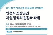 인천연구원은 2026년 3월 9일 오후 3시 인천광역시사회적경제지원센터 세미나실에서 “인천시 소상공인 지원 정책의 현황과 과제”라는 주제로 '제11차 현장동행 정책대화'를 개최한다. 이 행사는 어려움 속에서 변화의 시기를 맞이하고 있는 인천시 소상공인의 현황을 점검하고 지원 정책의 방향성을 논의하기 위해 마련됐다. 첫 번째 발표는 인천연구원 유근식 연구위원이 “인천시 소상공인 생태계 현황 진단”을 주제로, 두 번째 발표는 인천소상공인종합지원센터 유지원 센터장이 “인천 소상공인 지원 사업 성과 분석 및 정책 제언”을 주제로, 세 번째 발표는 중소기업중앙회 김민석 차장이 “인천 소상공인의 은퇴‧폐업 준비 현황 및 폐업 애로사항”이라는 주제로 발표한다. 이어지는 종합토론에서는 인천소공인협회 오승섭 이사장, 인천소상공인연합회 지주현 사무처장 등으로 구성된 소상공인 대표자들과 인천광역시 소상공인정책과 이상은 과장 등을 비롯한 정책관계자 간의 토론이 진행될 예정이다. 이 행사는 정책의 수요자인 소상공인과 인천시, 인천연구원, 인천소상공인종합지원센터, 인천신용보증재단, 중소기업중앙회 인천본부 등 관계기관이 한자리에 모여, 소상공인의 현황을 진단하고 정책의 방향성을 논의하