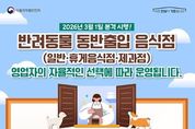 [영업자용] 2026년 3월 1일 본격 시행! 반려동물 동반출입 음식점(일반·휴게음식점·제과점) ■ 영업자의 자율적인 선택에 따라 운영됩니다. (방문 전) · 출입구 '반려동물 동반 가능' 안내문을 확인해 주세요. · 예방접종 완료 반려동물(개, 고양이 한정)만 동반 가능해요. (식사 때) · 매장 안에서 전용의자·케이지·목줄을 사용해주세요. · 조리 공간은 출입이 제한돼요. · 다른 손님을 배려해 충분한 거리를 유지해 주세요. (위생은 기본 매너) · 반려동물 식기구분, 음식은 덮개 사용을 꼭 해주세요. · 배변물은 전용 용기에 처리해 주세요. [소비자용] 반려동물 동반출입 음식점 ■ 반려인도 준비사항이 있어요! ① 예방접종은 기본 반려동물 동반출입 음식점 출입 시 예방접종 증명서 또는 사진 등 증빙자료를 보여주세요! ② '반려동물 동반출입 음식점' 안내문 확인 '반려동물 동반출입 음식점' 안내문을 확인 후 이용하세요! ③ 반려동물 동반출입 음식점에 있는 동안 반려동물은 이동하면 안돼요! 반려동물 간 또는 사람 간 안전을 위해 음식점 안에서 케이지 또는 목줄 고정장치 등을 이용해 반려동물 등의 이동을 금지해야 해요!